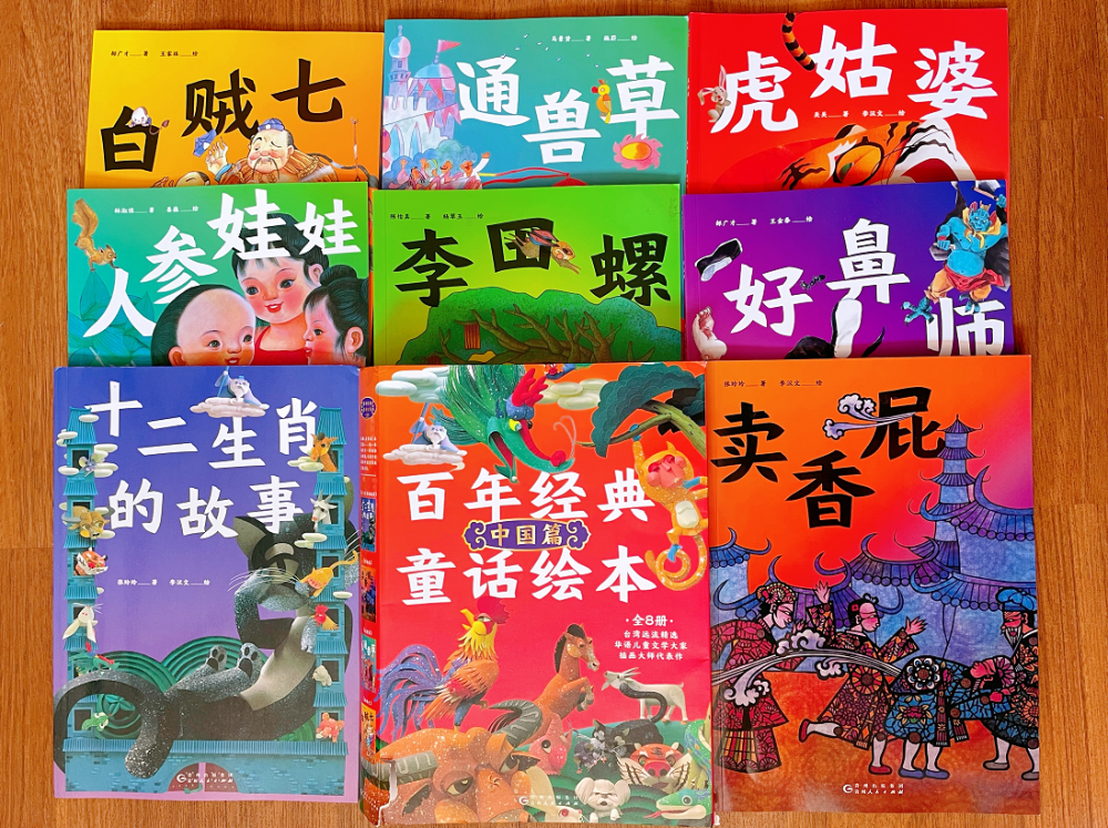 《百年經典童話繪本·中國篇》 這一套共有8冊,分手是十二生肖的故事、賣噴鼻屁、通獸草、白賊7、虎姑婆、人參娃娃、李田螺、好鼻師。都是海內撒播好久的經典且乏味的平易近間故事。 這套書的特點是筆墨以及插圖,故事選的是8個經典故事,筆墨在原來故事的根基上,讀起來 有韻律、朗朗上口,得當親子閱讀,也得當孩子本人朗誦。