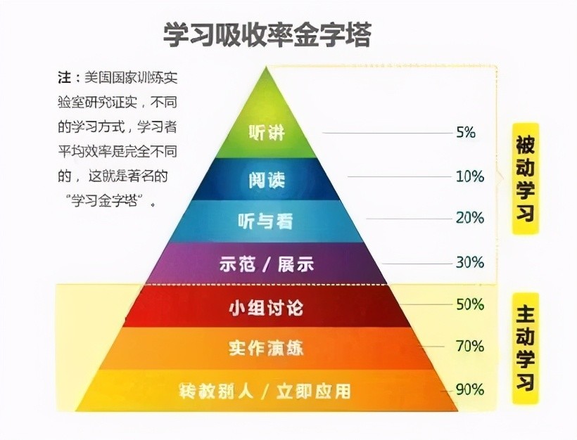 依據下面這幅圖,被動進修包含:聽、望、聽+望、示范或者鋪示,這類方式對于學問的吸取率依次是5%、10%、20%、30%;自動進修包含:小組套路、實作練習訓練、轉教他人或者者立刻運用,這些進修方式的吸取效率依次為:50%、70%、90%,很明明,“教會他人”是對學問的吸取率最高的一種方式,也是把學問內化吸取的一種最緊張的顯露。 重復是進修之王,而演講是進修的王中王,是進修的高等條理,到了高中,只有重復,學欠好,再積極也不行,只有能講進去,只有內化成本人的學問,才能會運用,這便是個中的神秘!更多內容,請持續存眷“贏在高三”。