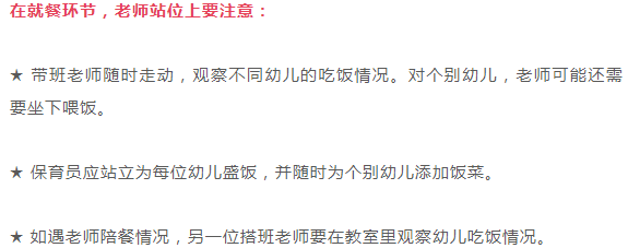 幼兒園天天的“一餐兩點”,一切孩子都在一路用飯,帶班先生以及保育員共同努力,無縫銜接。 但有的先生把就餐環節當成“談話會”,掉臂孩子用飯,先生以及保育員在一旁談天。