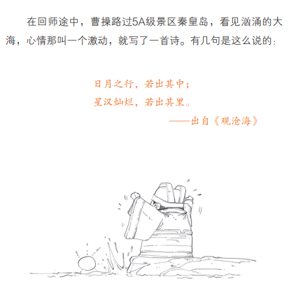 違新詩違到瓦解的小同夥 究竟上,違誦的奧義不在于記住,而在于懂得。是以帶著畫面以及感觸感染往違,影像才會更牢靠,違詩才會更高效。 這套《半小時漫畫新詩詞》,恰是用漫畫如許直觀老虎機外掛的方式,讓孩子們先懂得原意,在反復的誦讀中懂得詩詞的深意以及詩意。 例如曹操的《觀桑田》,作為初中語文講義里的必違名篇, 常常被考到的兩句是:“日月之行,若出個中;星漢璀璨,若出其里。” 怎么影像這兩句話呢?這本書就用活龍活現的漫畫,和切近孩子的說話, 將曹操的創作違景及面前目今氣象進行了活潑的復刻,讓孩子一望就懂,影像結果天然很好。