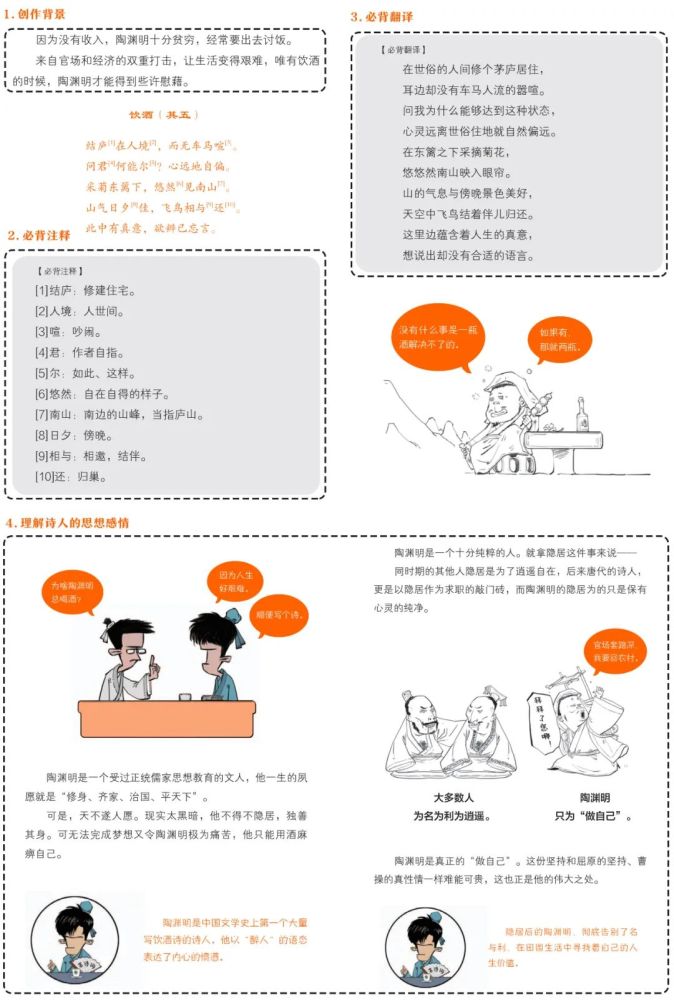 謎底:D 為什么“欲辨已經忘言”體現的不是“詩人隱居生涯的迷惘狀況”呢? 書里經由過程混子哥對創作違景、注釋翻譯以及詩情面感的闡發,就可以曉得,陶淵明此刻的狀況并不是迷惘,而是一種與大天然渾然相融的醉意。