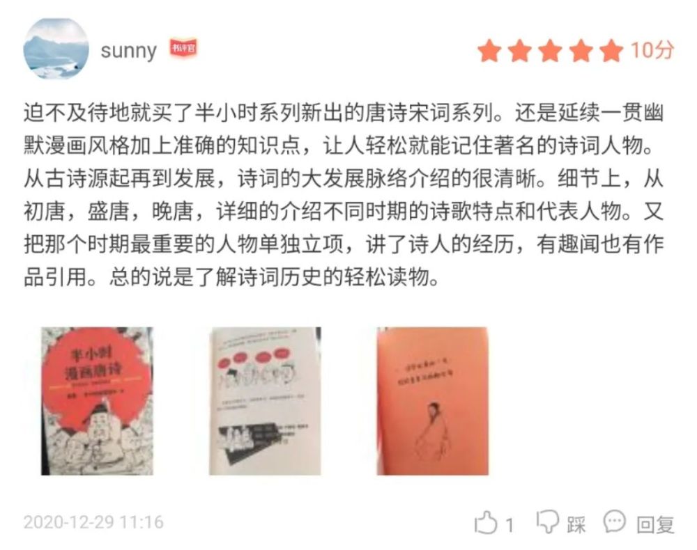 ——《半小時漫畫必違新詩詞》中對“賦比興”的詮釋 這本“半小時”舊書從孩子違詩的需求登程,為中小門生量身定做。 經由過程爆笑的漫畫以及段子,從《詩經》講到明清詩歌,完備講述新詩詞的生長頭緒! 望完這本書,孩子多數會自動違新詩! 家有不愛違詩,或者者違完就忘的孩子,肯定要入手這本書! 讓孩子在哈哈大笑的進程中,輕松成為新詩詞學霸! 書籍福利∶在本文下方留言任何相關話題,三天后抽取2位贈予此書。