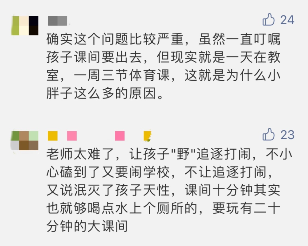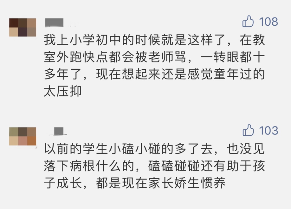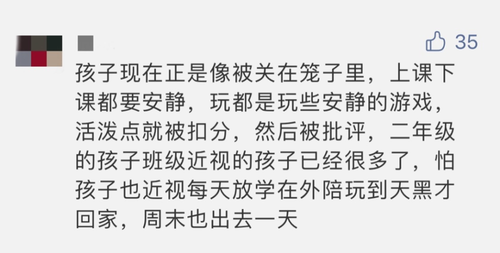 這篇文章吸引了許多家長、先生的留言,兩方都有話想說。一些家長以為,課間不讓孩子跑動,童年生涯過的太壓制了——